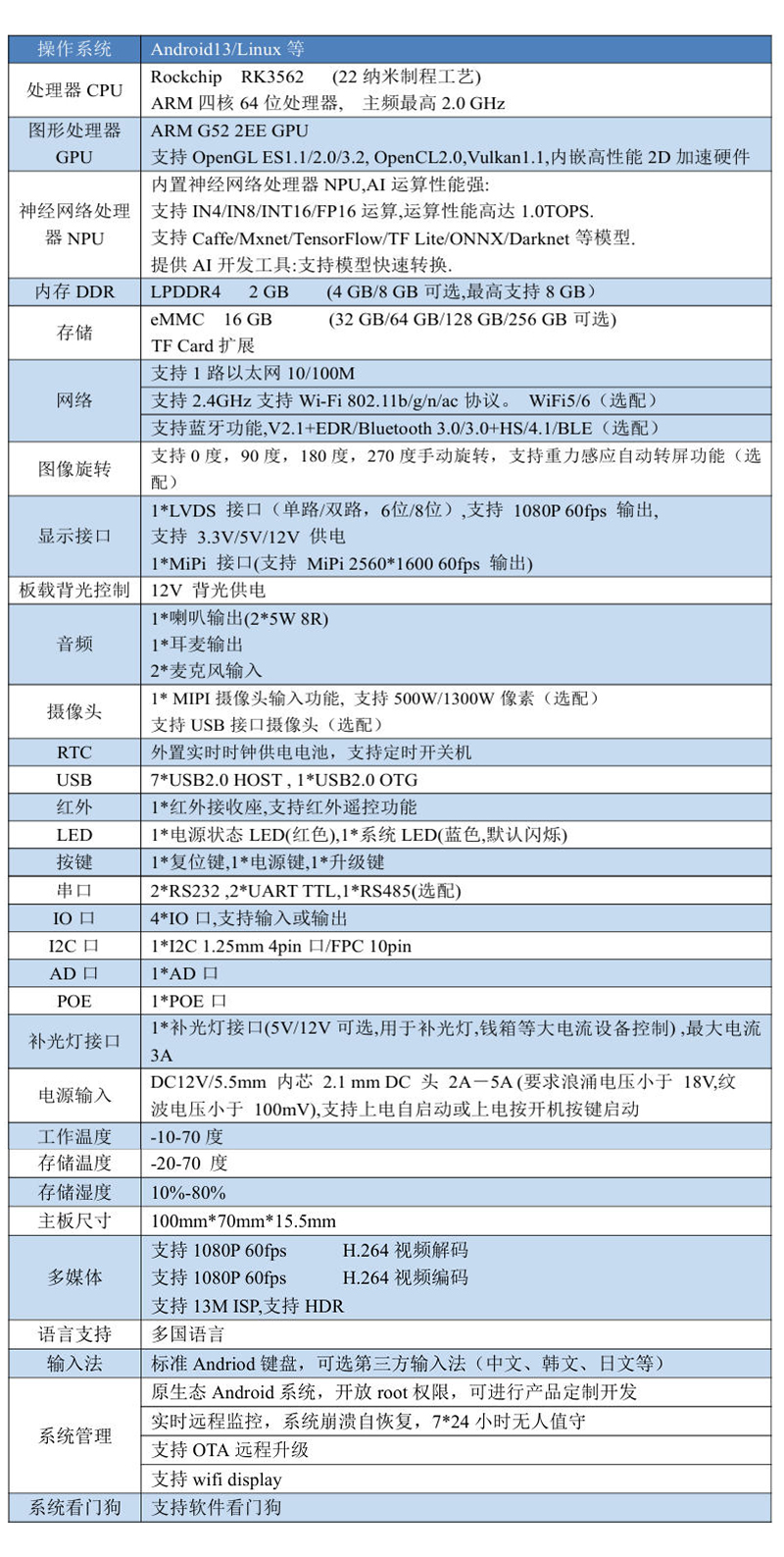 | 存儲 | eMMC 16GB (32 GB/64 GB/128 GB/256 GB 可選) |