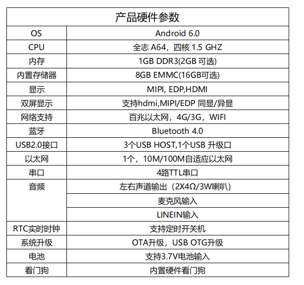 | 內(nèi)置存儲器 | 8GB EMMC(16GB可選) |