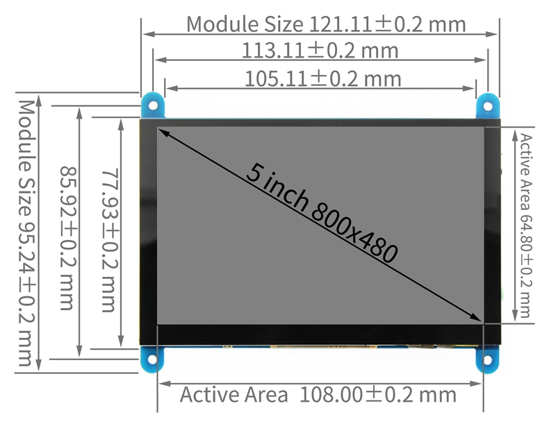 5inch標(biāo)準(zhǔn)顯示器,硬件分辨率800×480,可通過軟件配置分辨率(最高支持1920X1080)