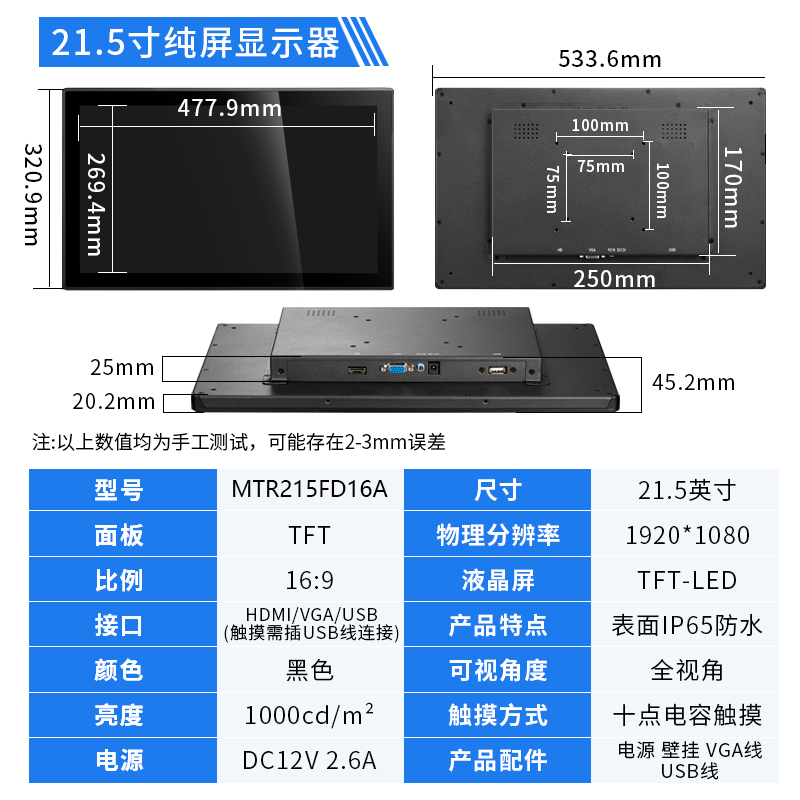 21.5寸工業觸摸顯示器1920*1080IPS屏HDMI接口1000亮度觸摸顯示器